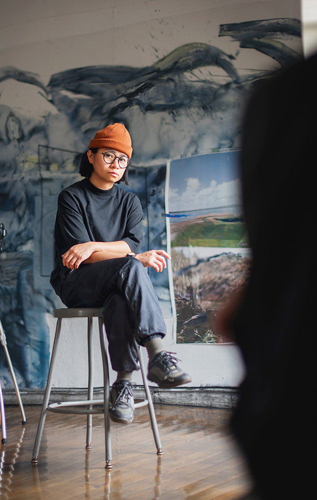 Cheeny Celebrado-Royer (b. Naga City, Philippines) is a multidisciplinary artist working with found and discarded materials to create installations, sculptures, and drawings that explore precarity, memory, and displacement. Drawing from decaying architectures and chroma-key aesthetics, she maps fragments of space—wreckage, green or blue tape—into constellations of unstable time and place. Her work reimagines drawing as